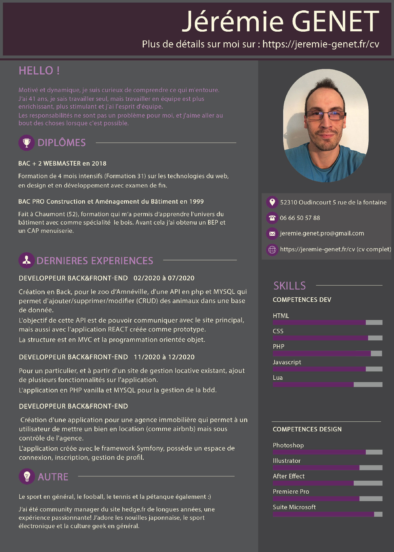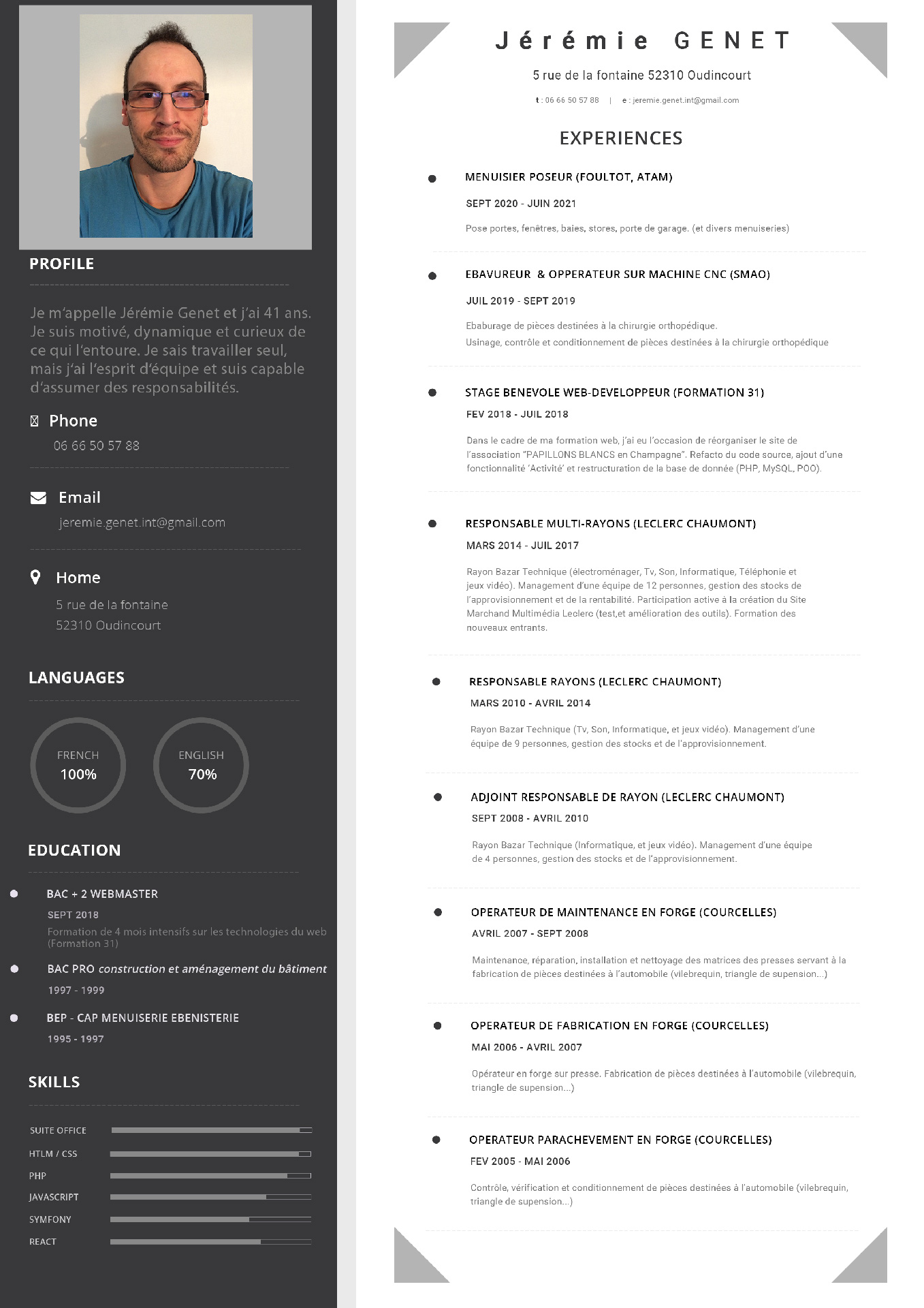 Ces différentes expériences m'ont rendu polyvalent et m'ont permis de prendre du recul sur le monde du travail en général.